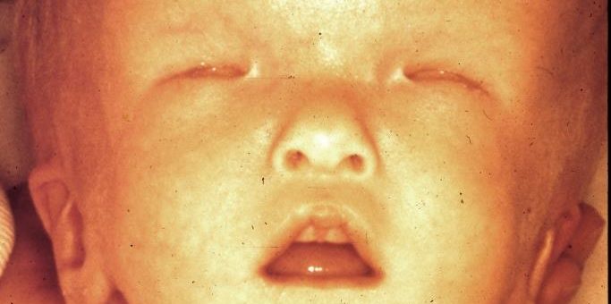 I (W. Wertelecki, M.D.) see a relatively large head and no evidence of ocular globes.