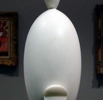 I see (W. Wertelecki, M.D.) a statuette probably with the intent to convey notions of Sub-Saharan ethnicity (prominent lips). From a medical perspective, this sculpture can be seen as an example of aprosopia, a rare condition for faces without ocular or nasal development. Anophthalmia and arhinia are extreme malformations – milder degrees are observed in instances of holoprosencephaly.