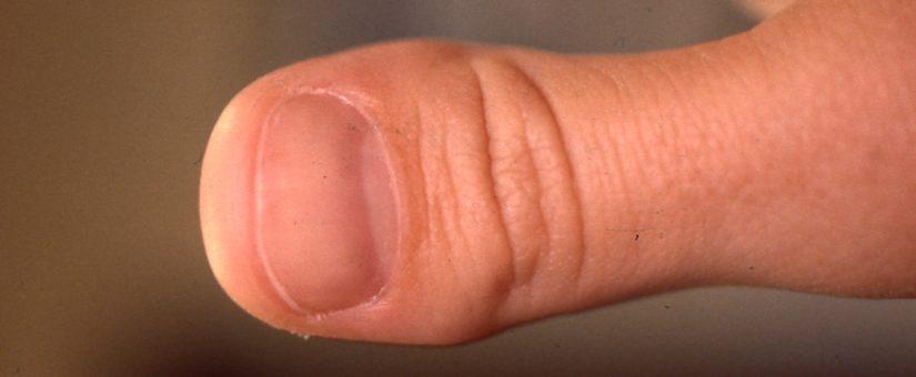 This sign is often called “clubbed thumb” – a MISNOMER – but unfortunately that is ingrained in medical parlance. In fact, “clubbed” thumbs, fingers, toes or digits in general are more likely to be signs of disease than a dysmorphic sign.