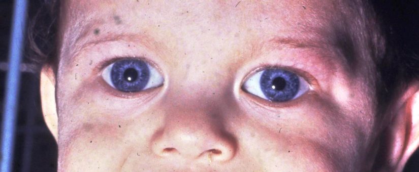 I (W. Wertelecki, M.D.) see a stigmatic face that is a facies (signal) of a syndrome – I also note an illustration of the irides – each iris is bluish (thin) and shows a stellate pattern (also a sign of thinness) – another facial sign is a relatively large mouth and small teeth separated by gaps. The history indicates this child is “very friendly, outgoing, and loves music” (please see additional comments).