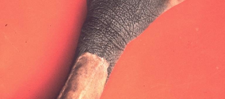 This image illustrates the post-surgical resection of a large portion of an extensive GCMN (an attempt diminish the cancer risk and deformation associated with a post-natal growth of these hamartomas). Please, see the pre-operative image in this patient’s gallery of images.