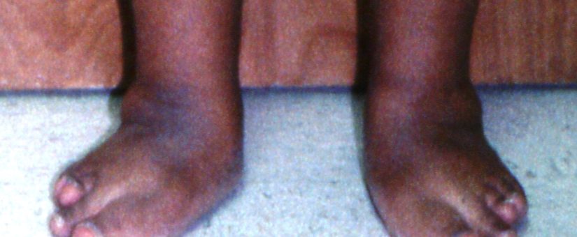 I (W. Wertelecki, M.D.) see symetric disproportion of toes, mainly shortening of 3-5 metatarsals (brachydactyly). This is an important objective sign which in combination with other signs should point toward the diagnosis, even of very rare disorders. Continued in this patient photo-gallery.