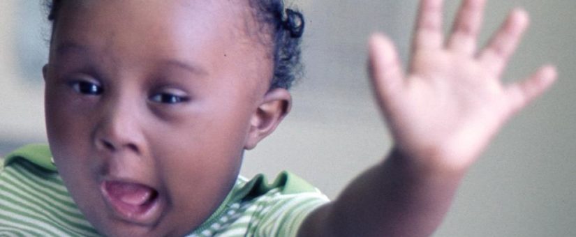 I (W. Wertelecki, M.D.) see an obvious instance of Down syndrome (DS). I hope you have noticed that the fingers are relatively short in proportion to the palm (brachydactyly). Other signs are upward slant of the palpebral fissures, a short nose, a sparsity of scalp hair reflected as a receding forehead hairline, and a small round ear – all signs nor specific but frequent in DS. You also must have noticed the asymmetry of the oral opening (if persistent it could be a sign of facial palsy). These signs are NOT the point for this presentation. The point is to underscore that infants with DS are not immune from complications nor from other concurrent disorders.
