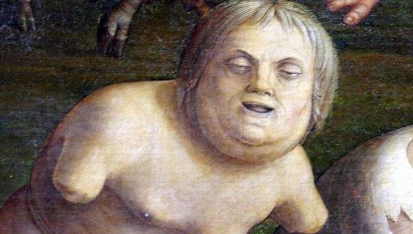 I see (W. Wertelecki, M.D.) a dysmorphic facies (a face with several dysmorphic signs) and absence of distal upper limbs (phocomelia) plus perhaps gynecomastia if this individual is a male or underdeveloped breast if a female. I also have the impression of a premature senility. In any case, instances of phocomelia associated with a dysmorphic facies compared to those with average (normal) facial proportions represent different etiology (causes). See Pandora Word Box for further notes.