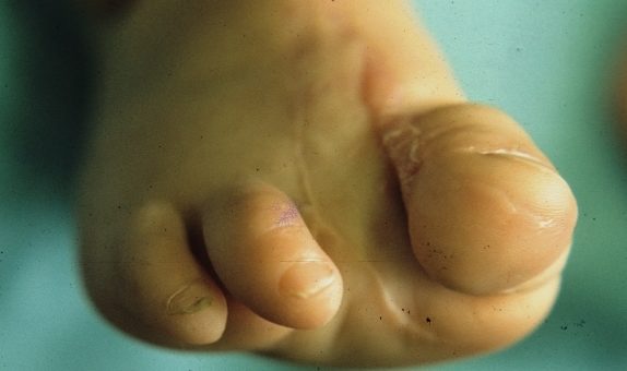 I (W. Wertelecki, M.D.) see a large hallux (first toe) and post-surgical evidence of a resection of the second toe.