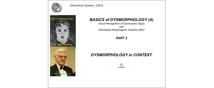 Part 2 of the Basics of Dysmorphology (A) tutorial speaks of such notions as Pathogenesis and Epigenetics using Down syndrome as a prototype. This part is probably the most complex and requires that you view it slowly and think carefully. What are the implications of the notions presented? Generally, we believe that this part should be seen, at least, twice.